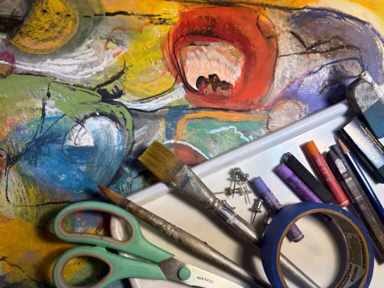 Students are encouraged to move beyond their “normal” drawing mediums and explore mixing mediums and collage.
