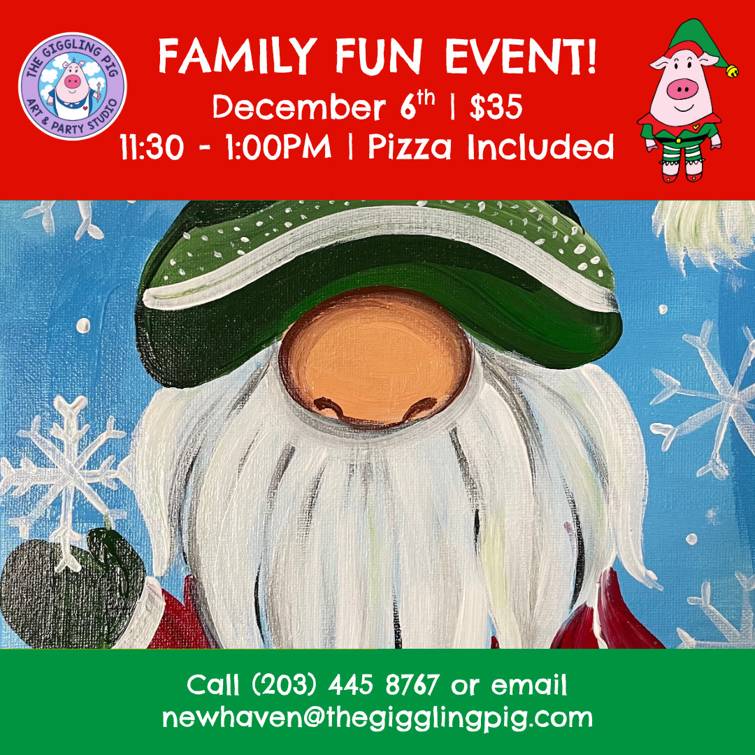 #TheGigglingPigNewHaven #FamilyFun #HolidayEvent #PaintAndPizza #HolidayGnomes #KidsArtClass #CreativeFamilyTime #ChristmasFun