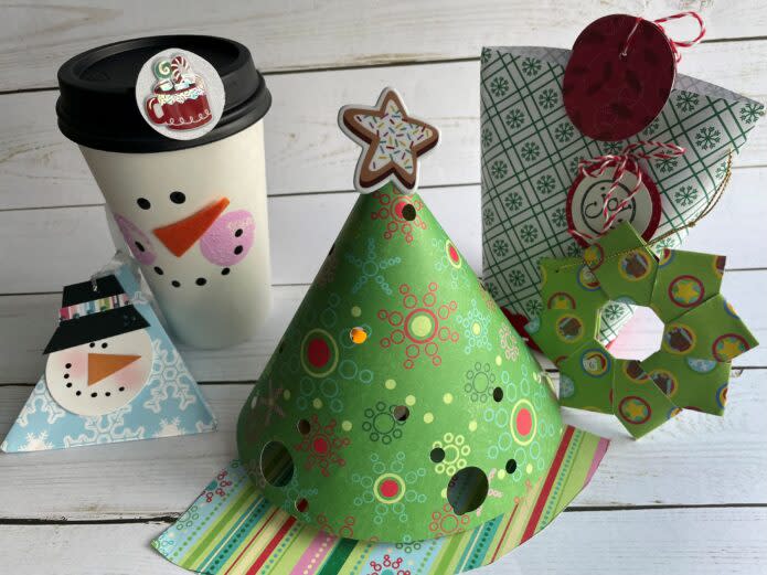 In this workshop make five holiday unique craft home décor projects to display or for gift giving. Create and learn the techniques to make an origami paper wreath, an upgraded to go coffee cup as a snowman holiday candy container, a unique gift bag, a paper tree and a triangle snowman box. Take home a detailed instruction workshop sheet, list of supplies, information about the techniques and photos of the projects. To make more holiday home décor projects, you will receive a kit which will include cardstock, die cut pieces, coordinating colored cardstock and any other supplies needed to make more of these projects on your own. No experience is necessary for this workshop just holiday spirit!